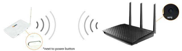 Front side (left to right): 5V/ 1A USB input, WPS button, USB output (5V/1A), USB