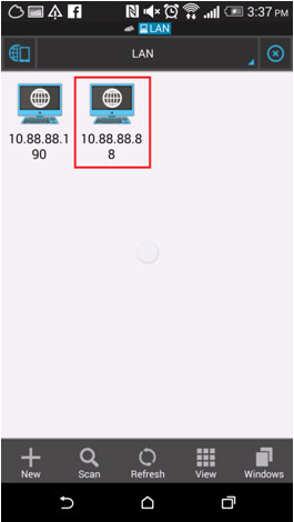 4. Press "Scan," and wait until Noovo's IP (10.88.88.88) shows