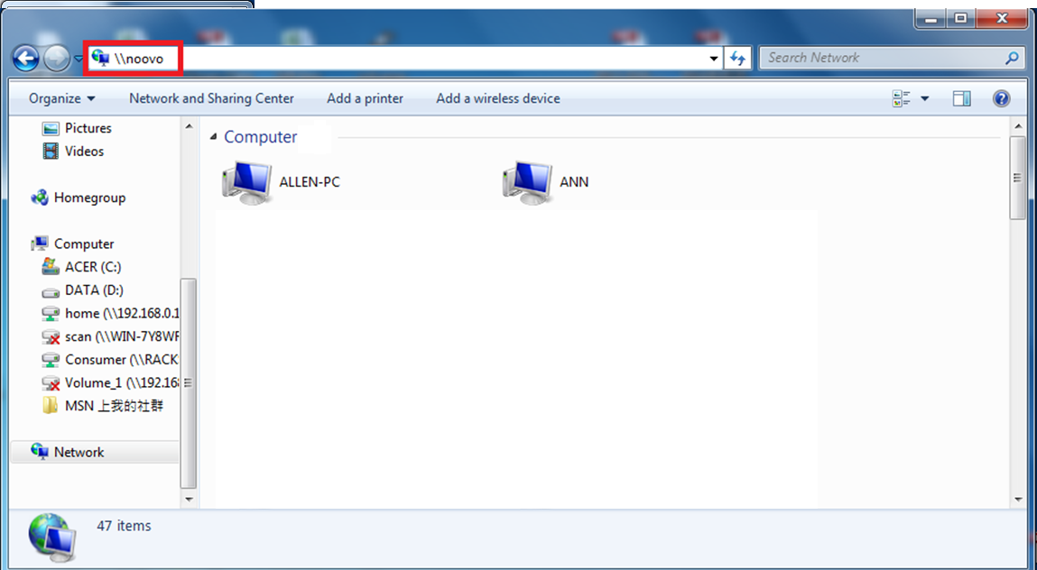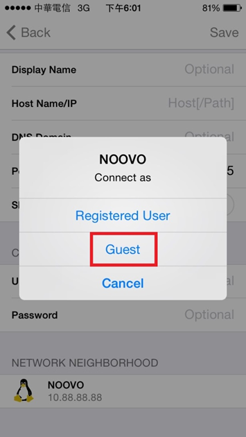 6. Select Noovo or 10.88.88.88 under Network Neighborhood