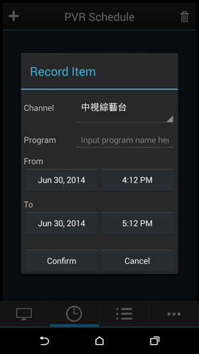 2-2. Manual Recording: Set up a recording schedule manually in the PVR schedule.